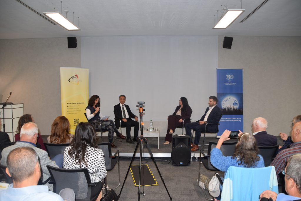 Wie vielfältig die Geschichten hinter erfolgreichen Unternehmensgründungen sind, wurde in der anschließenden Podiumsdiskussion deutlich. Unter der Moderation von Gizem Weber (DTI) diskutierten Mustafa Baklan (SUNTAT), Christian Ulsamer (Wirtschaftsförderung Mannheim) und Zeynep Doğrucan (FORUM Unternehmensgruppe) über persönliche Erfahrungen, Herausforderungen und die Chancen, die kulturelle Vielfalt für die Wirtschaft eröffnet.